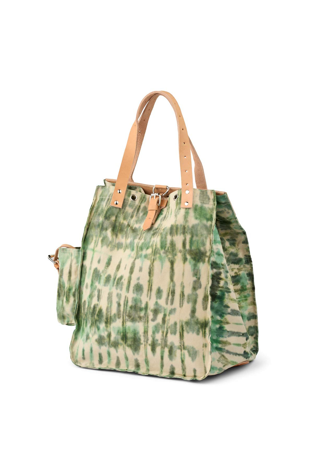 Deze grote tas valt op door een handgeverfd tie-dye patroon, gemaakt in het kleuratelier van Rabens op Bali.
