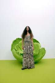 Annebeth - Ikat V-dress I Citrus black dark beige