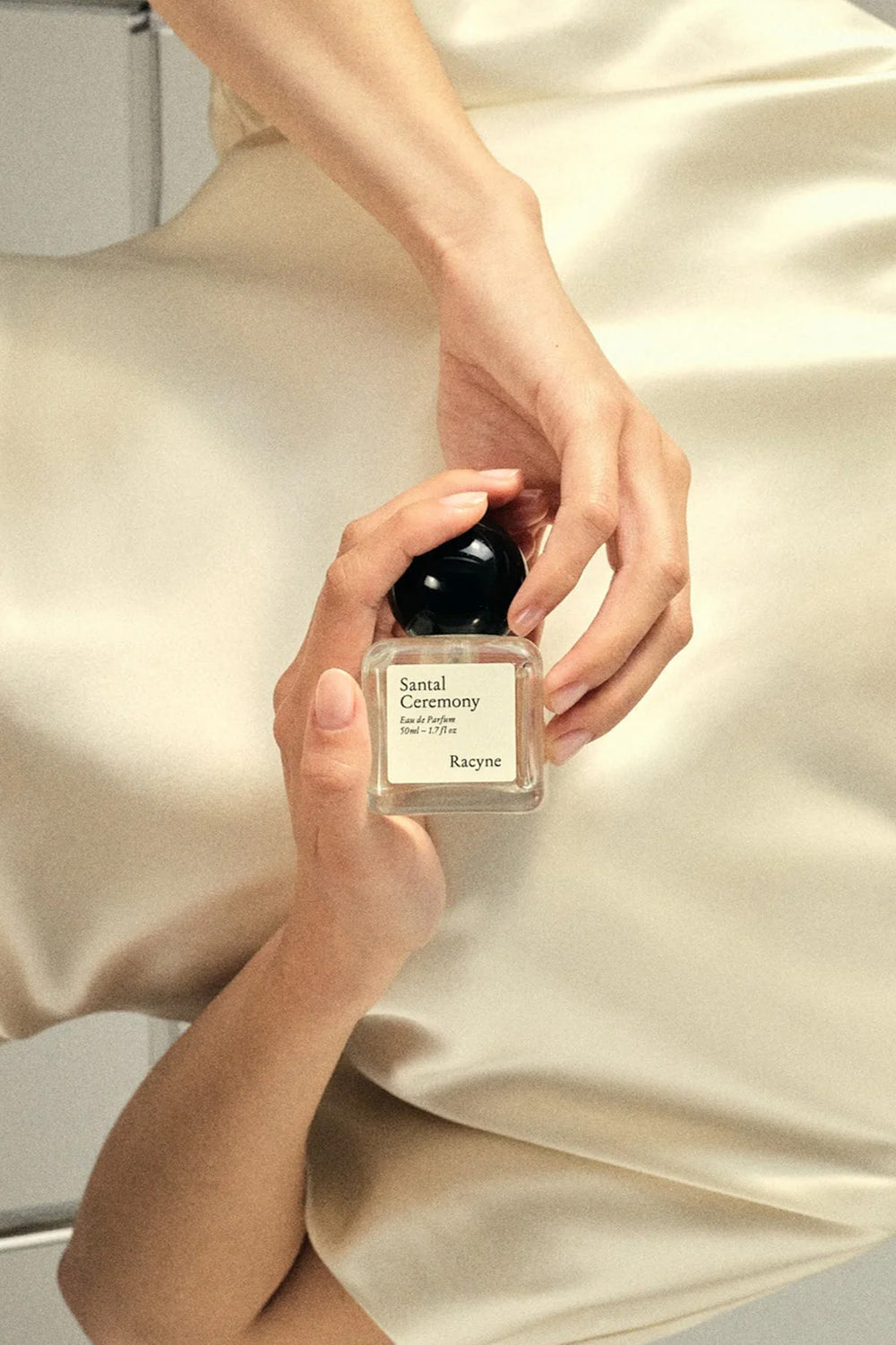 We zijn verheugd vier genderneutrale Racyne-parfums te introduceren, gemaakt van natuurlijke grondstoffen en gepresenteerd in esthetisch verfijnde flacons.