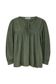 Veda - Poplin shirt box pleat sleeve I Pelican grey