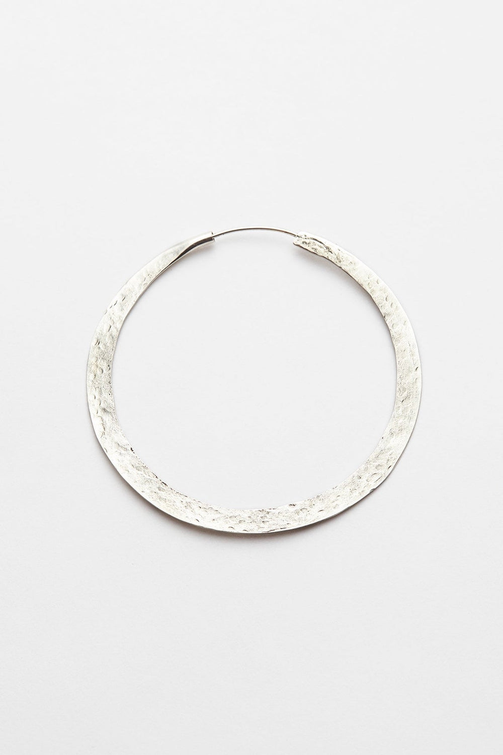 This beautiful silver earring is made with a special hammering technique that gives it an uneven and unique surface.