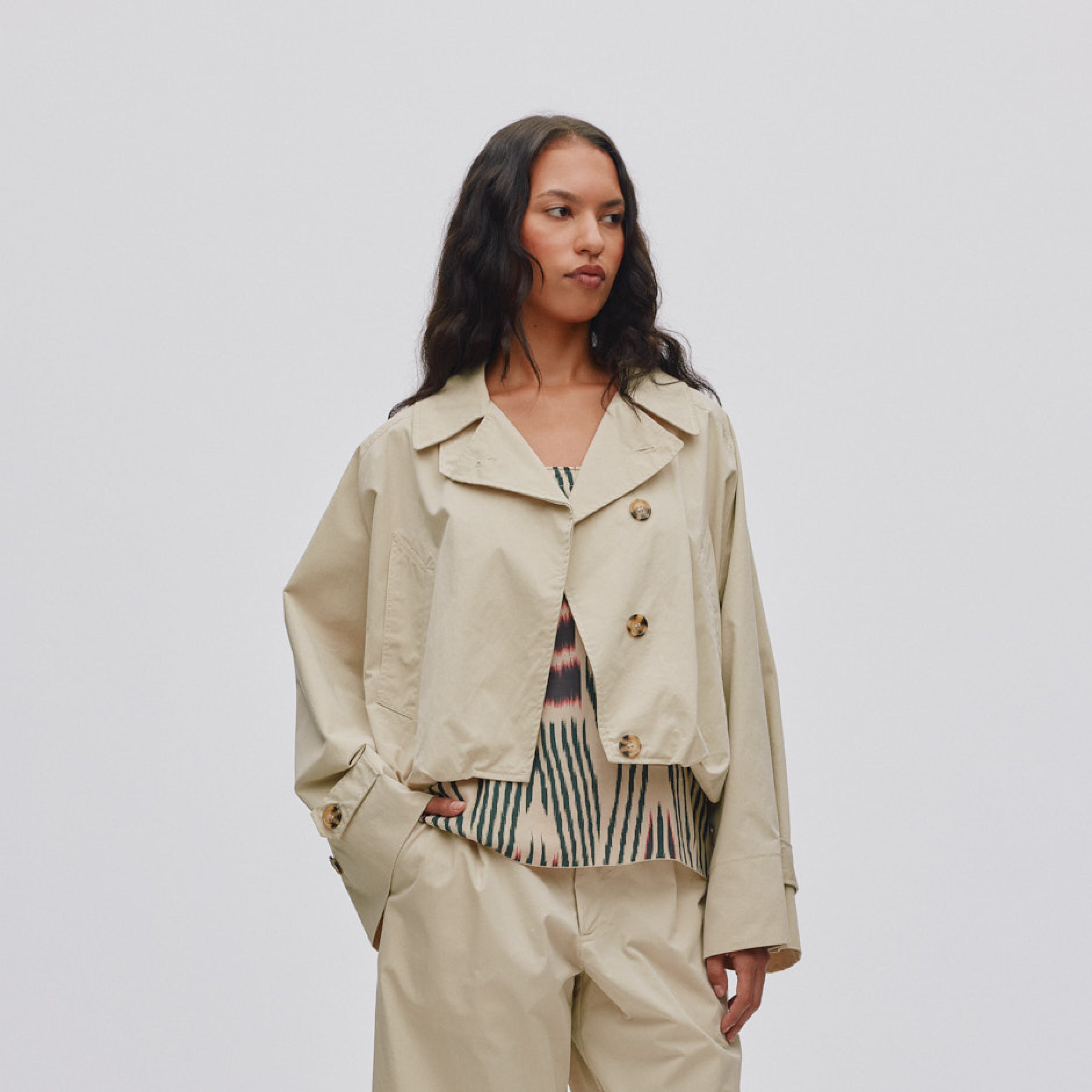 In de collecties van Rabens vind je altijd stijlvolle stukken met een casual uitstraling die moeiteloos overgaan van dag naar nacht, gestyled met eenvoudige accessoires.